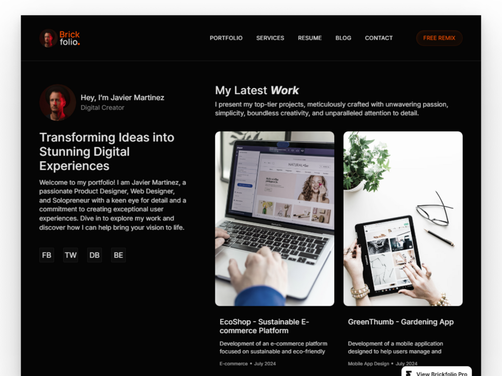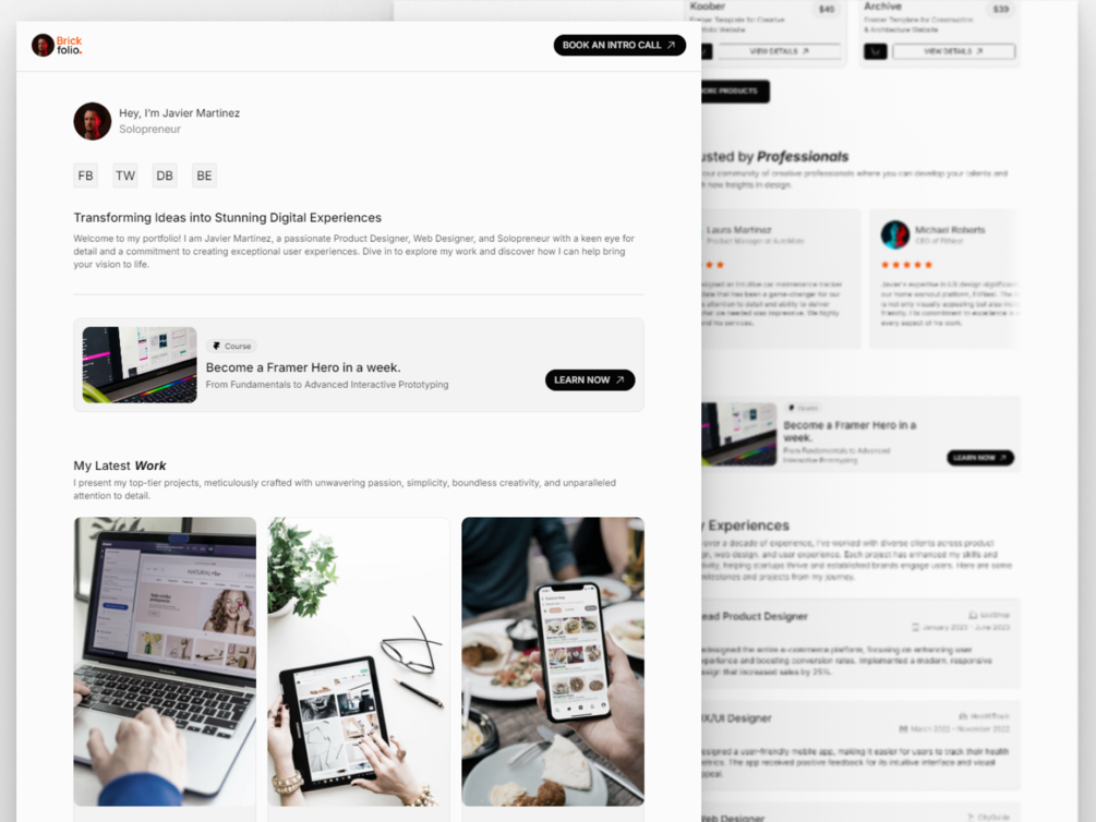 Brickfolio - Framer Template for Personal Portfolio Website